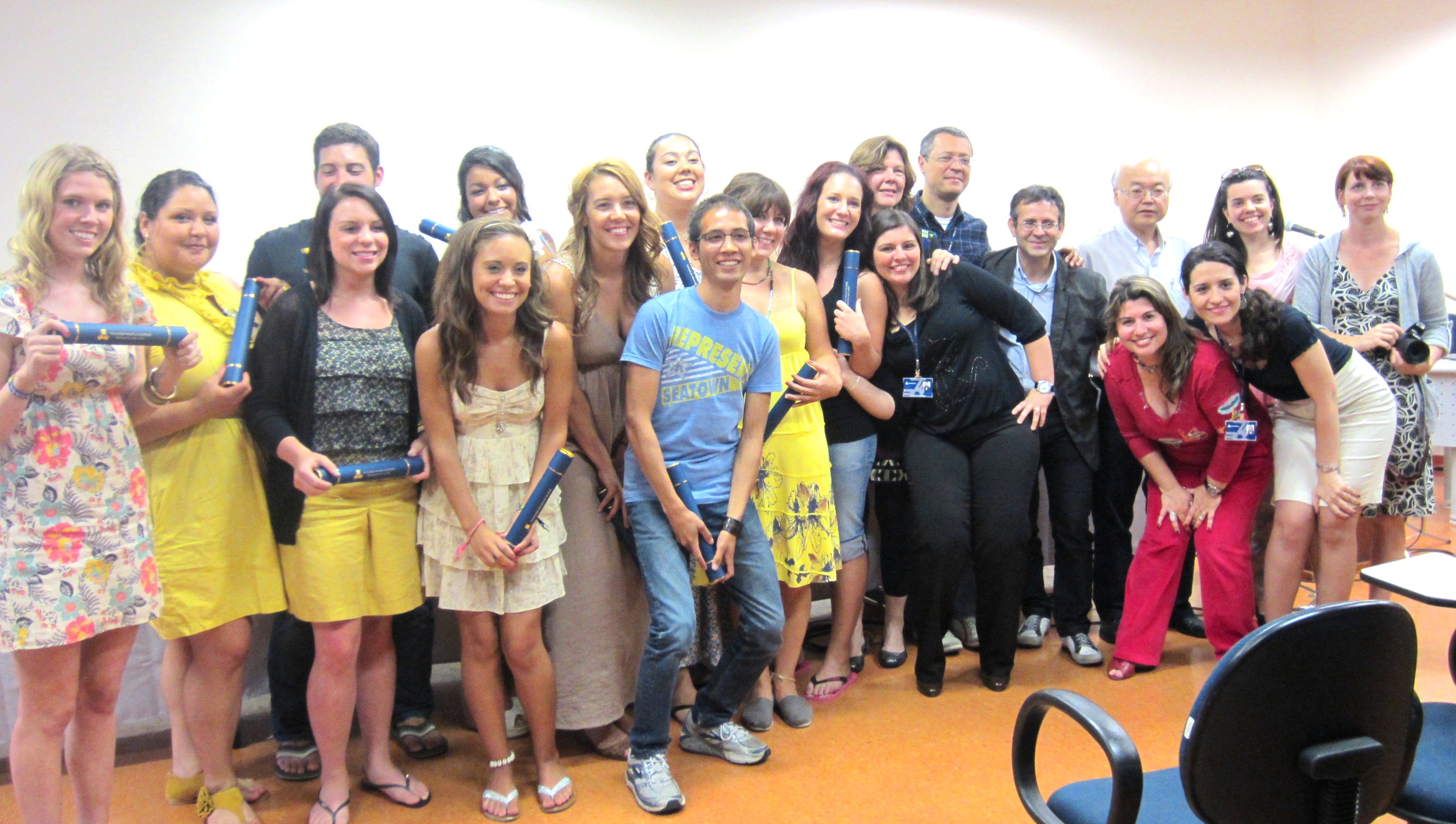 Após 19 dias no Brasil, os alunos que tiveram a oportunidade de conhecer a língua portuguesa e a cultura brasileira foram gratificados com a cerimônia de formatura.
