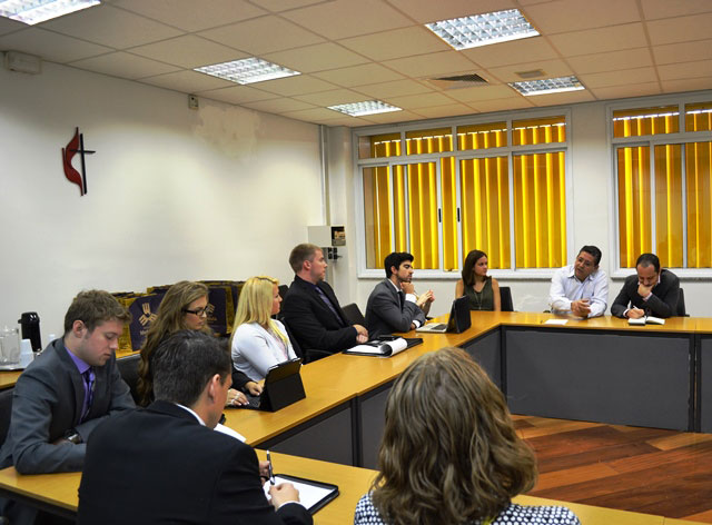 O grupo da Azusa Pacific visita a Metodista anualmente e pela primeira vez veio acompanhado da Roberts. Os cinco alunos da Azusa fazem parte do programa de MBA Millenium, em que viajam para diversos países para conhecer empresas de diferentes segmentos. “O objetivo é ver como atua a liderança e as estratégias, através da lente da cultura local”, explica Kevin Mannoia, capelão da Azusa. Já a Roberts foi representada por duas alunas, uma professora e a diretora de programas internacionais.