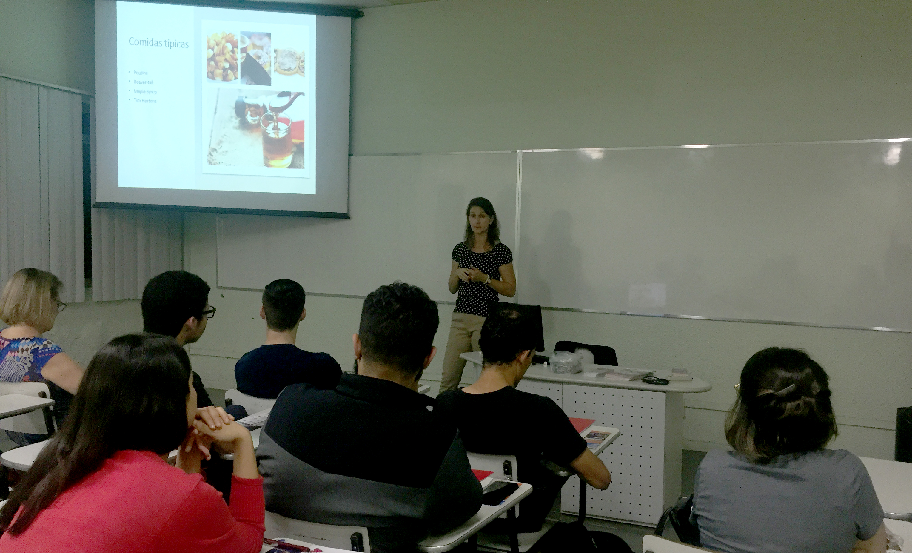 A diretora de marketing da ESC, Melina Trindade, expôs curiosidades sobre culinária, esportes e a moeda canadense, além de apresentar a estrutura da instituição, localizada em Toronto.