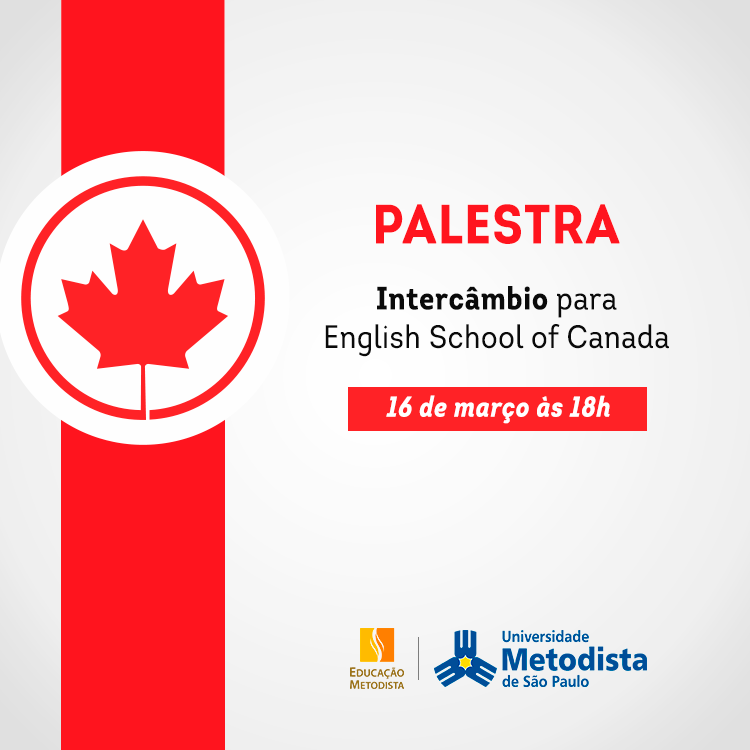 A Assessoria de Relações Internacionais promove, das 18h às 19h30 de 16 de março de 2018, uma palestra sobre o intercâmbio oferecido pela Metodista para a ESC – English School of Canada. O evento será realizado na sala 327 do Edifício Delta (Campus Rudge Ramos).
