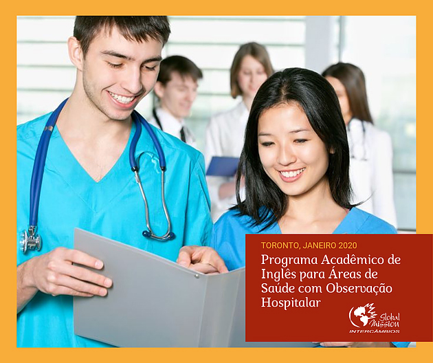Estão abertas as inscrições para a 6ª edição do Programa Acadêmico de Inglês para Áreas de Saúde, com uma semana opcional de Observação Médica no Hospital “Sick Kids” de Toronto. O programa é uma parceria de Global Mission Intercâmbios com a English School of Canada, para atender estudantes e profissionais das áreas de Medicina, Enfermagem, Biomedicina, Nutrição e Fisioterapia, entre outras.