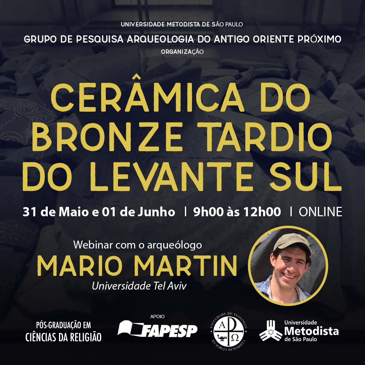 O Grupo de Pesquisa Arqueologia do Antigo Oriente Próximo receberá o arqueólogo Mario Martin, da Universidade Tel Aviv, para webinar com o tema "Cerâmica do Bronze Tardio do Levante Sul".