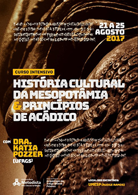 O projeto de pesquisa Arqueologia do Antigo Oriente Próximo e o Programa de Pós-graduação em Ciências da Religião promovem, entre os dias 21 e 25 de agosto de 2017, o curso intensivo “História Cultural da Mesopotâmia e Princípios de Acádico”. Os encontros serão realizados no Edifício Ômega (Campus Rudge Ramos).