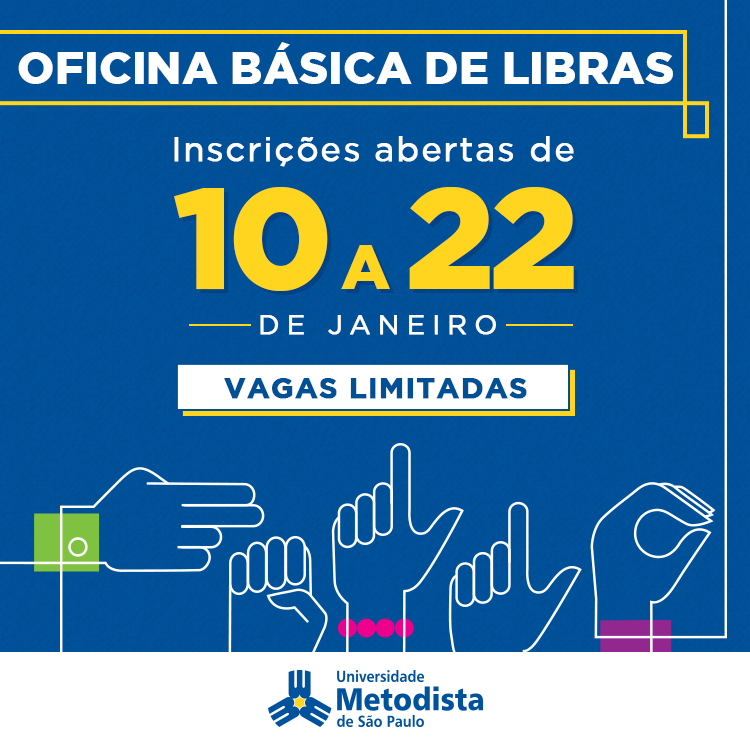 A Assessoria Pedagógica para Inclusão oferece a Oficina Básica de Libras gratuita para alunos de graduação da Universidade Metodista de São Paulo. O período de inscrições vai de 10 a 22 de janeiro.