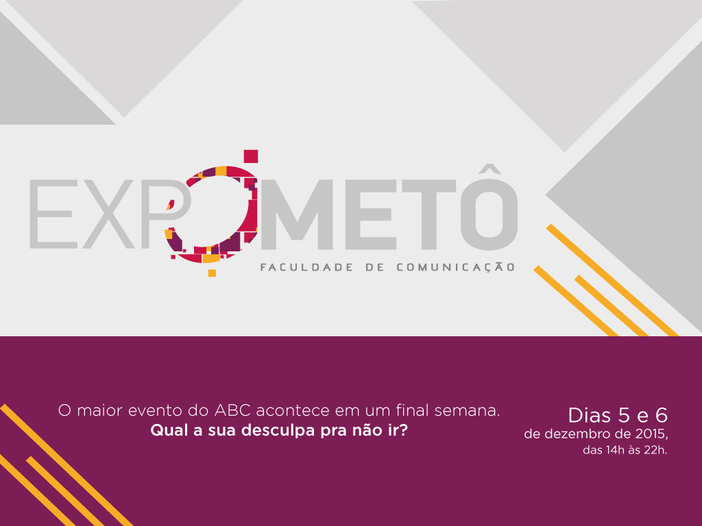 A Escola de Comunicação, Educação e Humanidades da Universidade Metodista de São Paulo promove o Expometô 2015, o maior evento de comunicação realizado pelos alunos dos cursos de Publicidade e Propaganda, Comunicação Mercadológica e Design de Interiores. A feira, que está na 15ª edição, é realizada anualmente no Pavilhão Vera Cruz, em São Bernardo do Campo, e neste ano ocorre nos dias 5 e 6 de dezembro, das 14h às 22h30.