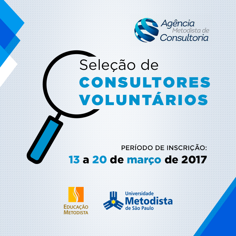A Agência Metodista de Consultoria está com inscrições abertas para alunos da Escola de Gestão e Direito interessados em atuar como Consultores Juniores em projetos que serão desenvolvidos no período de março a dezembro de 2017.