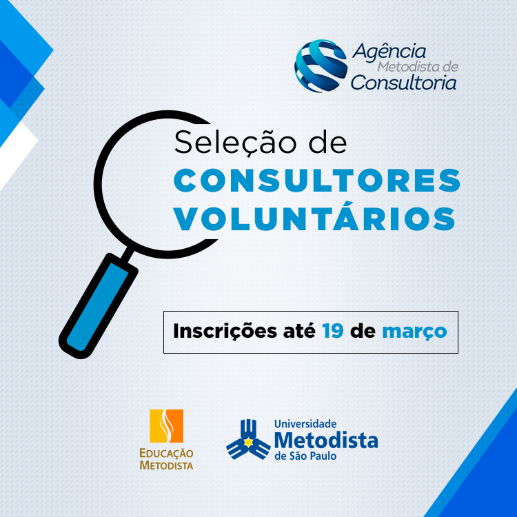 A Agência Metodista de Consultoria está com inscrições abertas para alunos da Escola de Gestão e Direito interessados em atuar como Consultores Juniores em projetos que serão desenvolvidos no período de abril a dezembro de 2018.