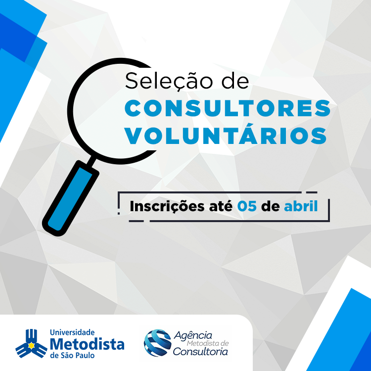 A Agência Metodista de Consultoria está com inscrições abertas para interessados em atuar como Consultores Juniores voluntários em projetos que serão desenvolvidos no período de abril a dezembro de 2019.