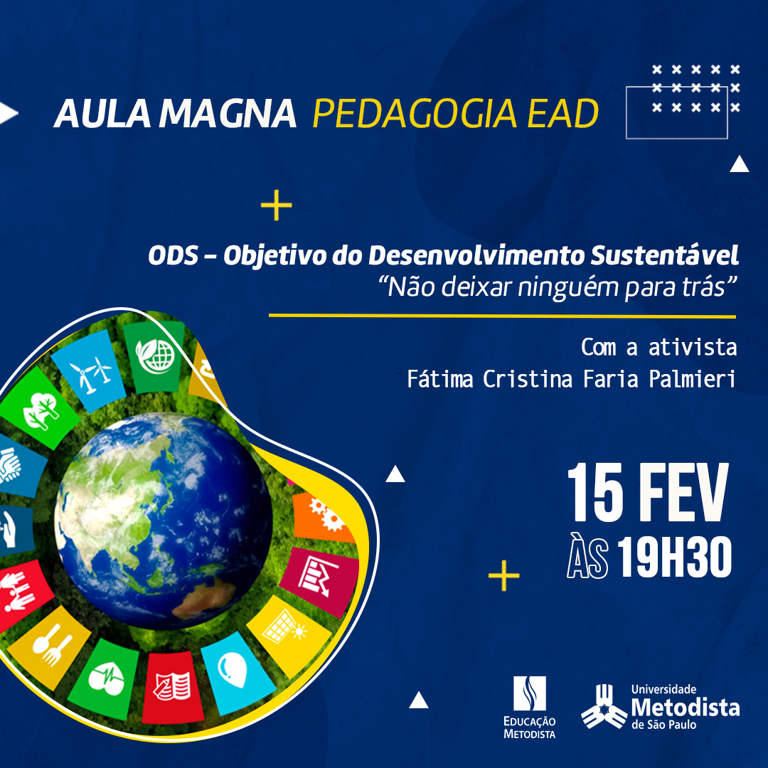 A coordenação do curso de Pedagogia EAD - preocupada com as questões dos ODS (Objetivos de Desenvolvimento Sustentável) - convida a comunidade para discutir a agenda da ONU (Organização das Nações Unidas). O objetivo é dialogar sobre o desenvolvimento econômico, ambiental e social dos países. A ativista Fátima Cristina Faria Palmieri é a palestrante do encontro on-line.