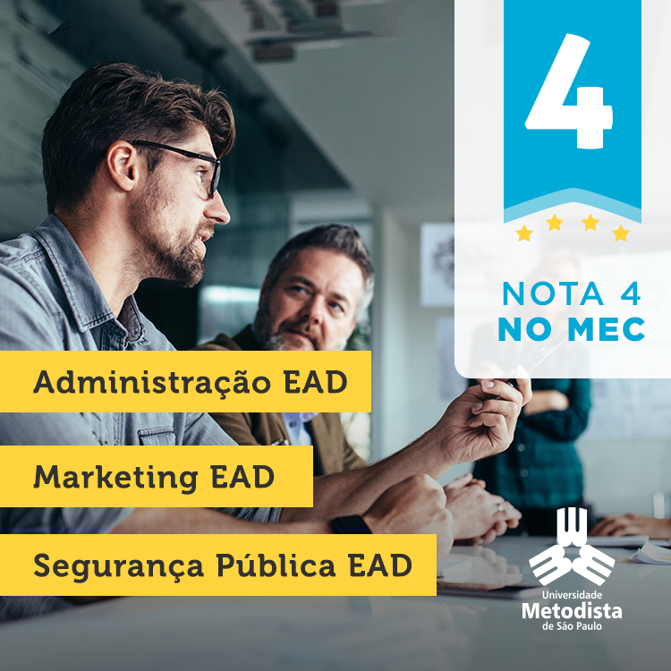 Em parecer periódico para renovação e reconhecimento de cursos de nível superior, as graduações a distância em Administração, Marketing e Segurança Pública da Universidade Metodista de São Paulo foram avaliadas pelo Ministério da Educação (MEC) com conceito 4, em escala que vai de 1 a 5 – o curso de Logística EAD alcançou nota máxima na avaliação.