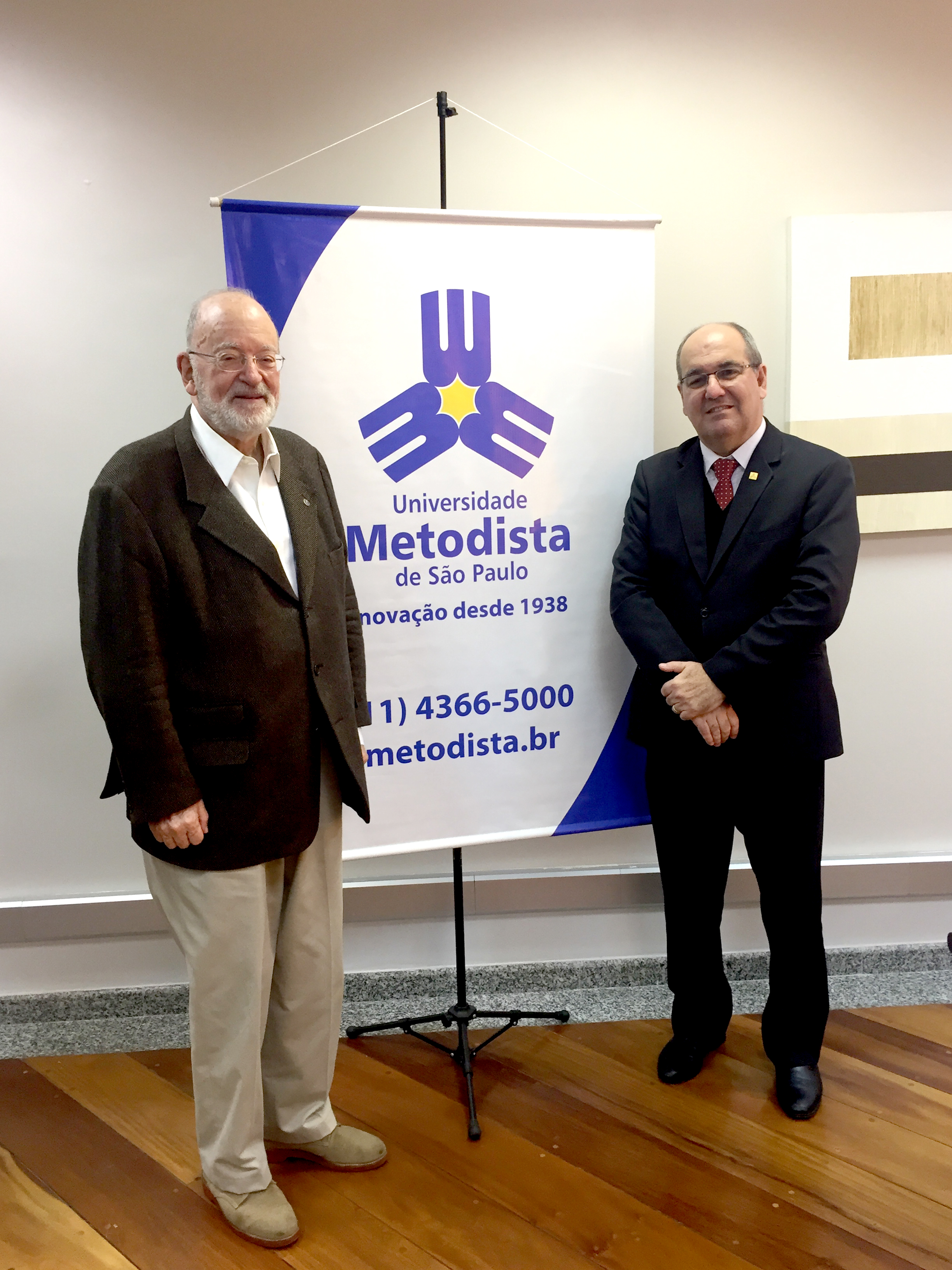 Para debater sobre o EAD, o reitor da Universidade Metodista de São Paulo, Paulo Borges, recebeu em sua sala o presidente da Associação Brasileira de Educação a Distância (ABED), Fredric Michael Litto.