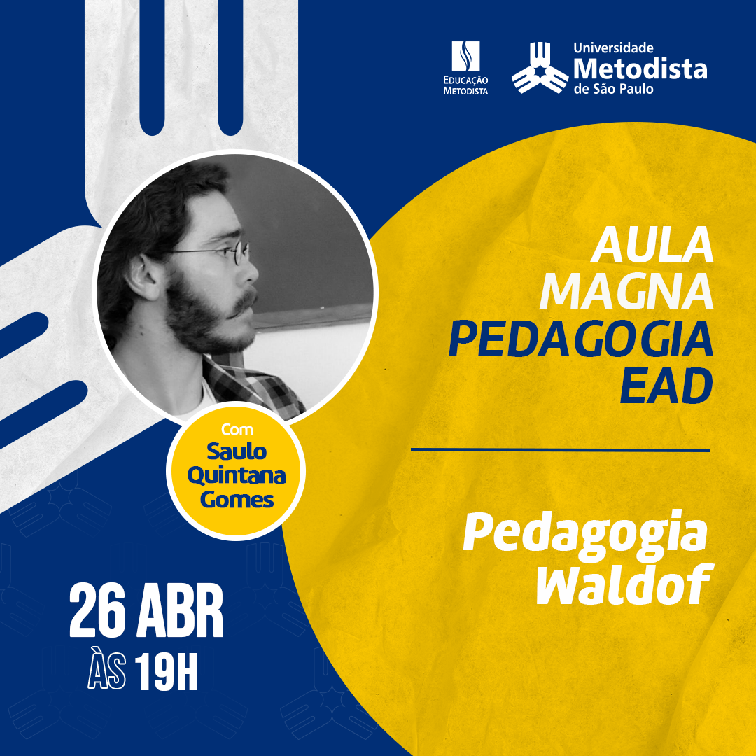 O curso de Pedagogia EAD terá aula magna on-line no dia 26 de abril, às 19h, com o tema “Pedagogia Waldof”, ministrada pelo doutor em Ensino de Ciências e Matemática Saulo Quintana.