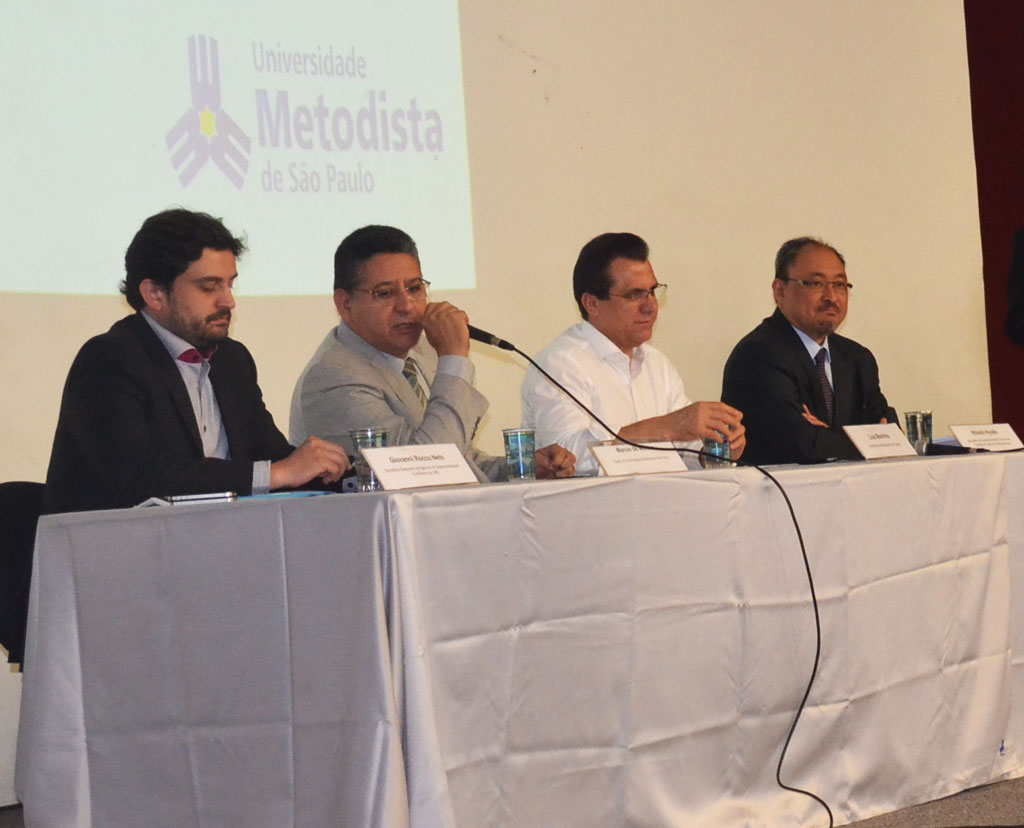 Giovanni Rocco, reitor Márcio Moraes, prefeito Luiz Marinho e secretário Hitoshi Hyodo