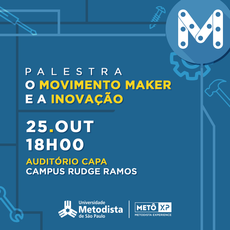 Com o tema “O Movimento Maker e a Inovação”, a Universidade Metodista de São Paulo promove dia 25 de outubro, às 18h, no Auditório Capa, palestra com a engenheira de alimentos Luciana Hashiba. O evento faz parte da programação da Metô XP.