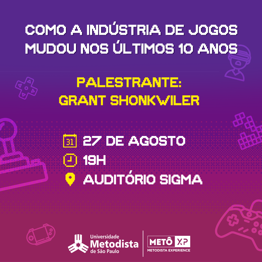 É com essa constatação que a Universidade Metodista de São Paulo, em parceira com a Full Sail University, promove no dia 27 de agosto, às 19h, no Auditório Sigma, a palestra “Como a Indústria de Jogos Mudou nos Últimos 10 Anos? ”, ministrada, em inglês, por Grant Shonkwiler. Para participar, basta inscrever-se gratuitamente por meio deste link.