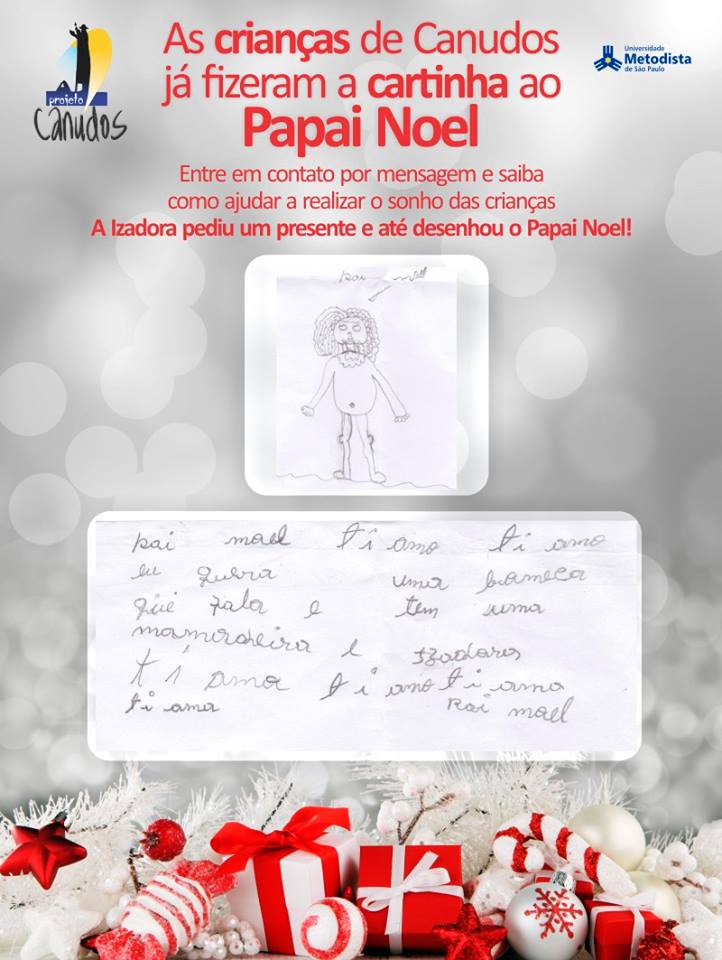 Outra forma de contribuir é “adotando” as crianças no Natal, atendendo diretamente o pedido de uma das crianças atendidas. As cartas estão na FanPage do Projeto Canudos.