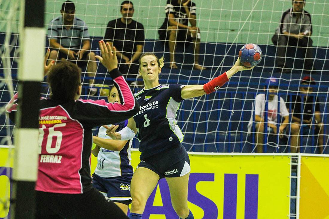 A Metodista/São Bernardo (SP) conseguiu uma vantagem expressiva rumo à final da Liga Nacional de Handebol Feminino. O time foi até o ginásio do Altos de Santana, na noite desta quinta-feira (05), e venceu as donas da casa, a equipe do São José dos Campos (SP), por 36 a 22 (16 a 09 no primeiro tempo), no primeiro duelo das semifinais. O jogo de volta será no domingo (08), às 14h, em São Bernardo do Campo.