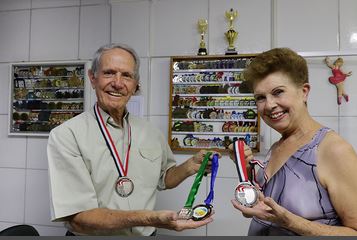A prática de atividades físicas é fundamental em qualquer etapa da vida. Exemplo disso é o casal Francisca de Assis Guilardi Rossi, 73 anos, e Helio Rossi, 75 anos. Juntos há mais de 50 anos, eles praticam ginástica, vôlei e até mesmo arremesso de peso.
