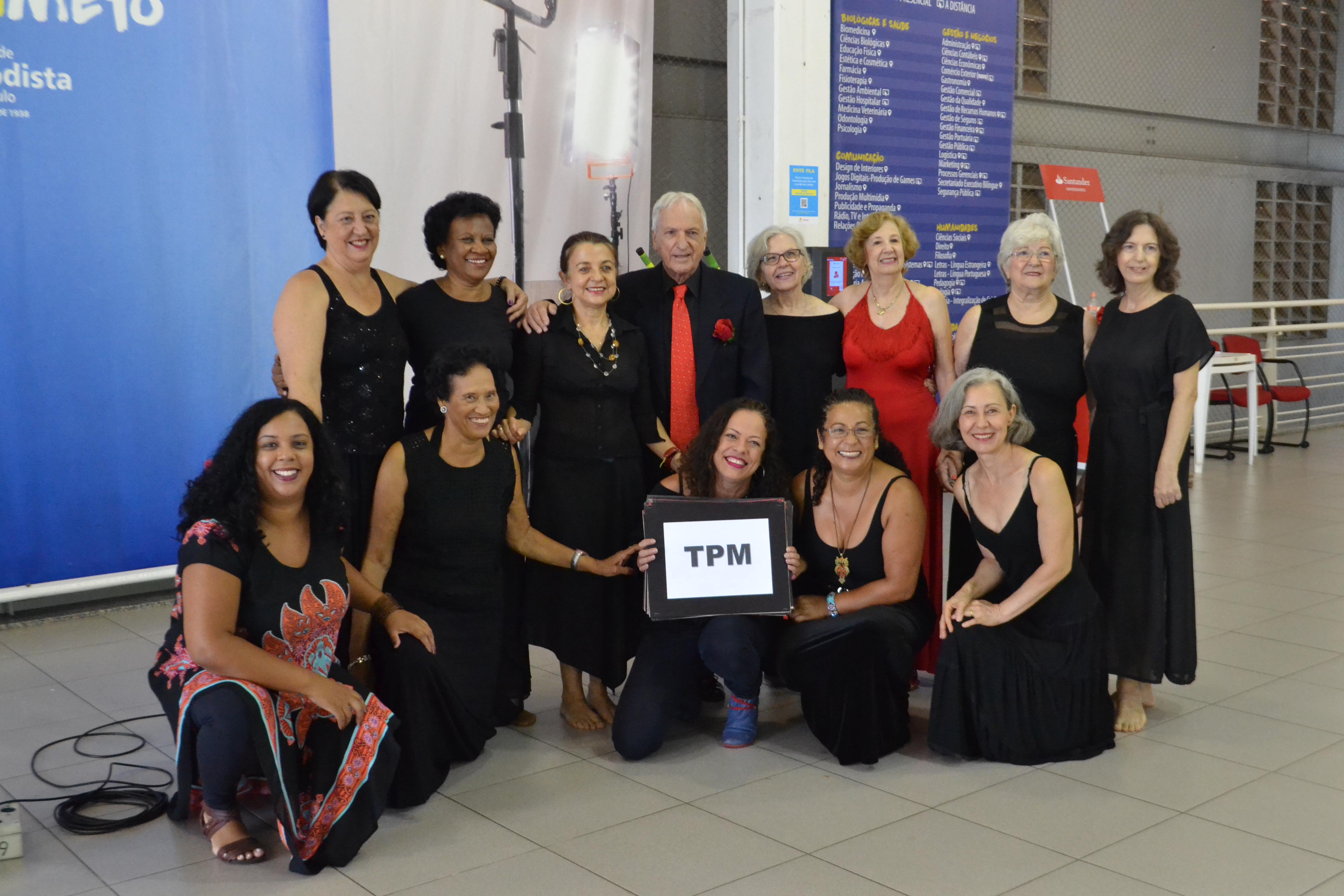 Os integrantes do grupo de Teatro Aquarela, do Programa Aquarela - Terceira Idade na Universidade, dançaram e trouxeram ao debate adjetivos que definem as mulheres. Zelosa, poderosa, única, amiga e forte — essas são apenas algumas das características retratadas pelo grupo. A arte-educadora e diretora, Nina Mancin, conta que a escolha desses adjetivos foi feita junto à comunidade da Universidade, em uma pesquisa informal sobre como descrever mulheres. “Nossa intenção foi mostrar a todos a importância da mulher na sociedade e no mundo. Comecei perguntando a algumas pessoas próximas, depois conversei com quem discute empoderamento feminino”, relata.