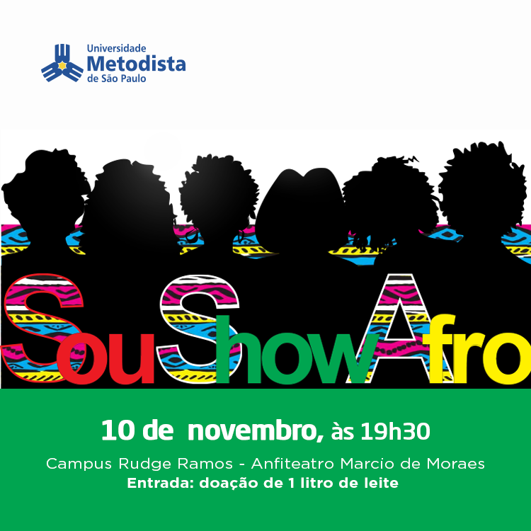 No dia 10 de novembro, o Núcleo de Arte e Cultura da Universidade Metodista de São Paulo realizará o 13º Sou Show Afro, ação cultural que visa estimular a reflexão e o debate sobre a consciência negra por meio de apresentações artísticas que dão visibilidade, especialmente, para pessoas negras e projetos que fortalecem a cultura e a identidade afro-brasileira.
