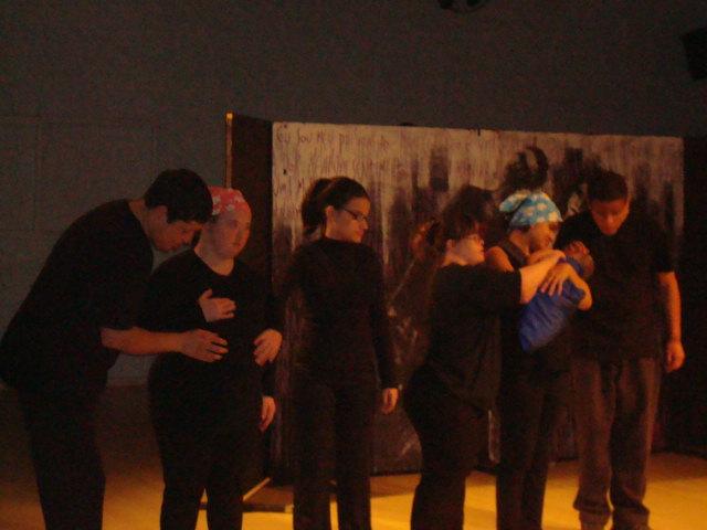 Grupo de Teatro Inclusivo em uma das peças de encerramento das atividades da oficina. Foto: Eduarda dos Santos Silva