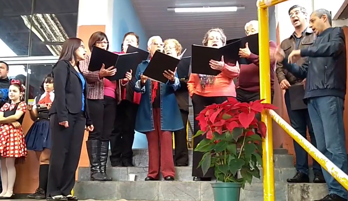 Professores e alunos do SESI (Serviço Social da Indústria) de Ribeirão Pires, acompanhados dos pais, tiveram oportunidade de ouvir cânticos de Natal em miniconcerto realizado em 8 de dezembro pelo recém-formado Coral da Metodista. O convite partiu da diretoria do SESI por meio da bibliotecária Maristela Marcatto, que já foi funcionária da Metodista, conhece a busca por excelência da instituição e sentiu o desejo de oferecer algo diferente à comunidade do SESI nas festividades e premiações de final de ano.