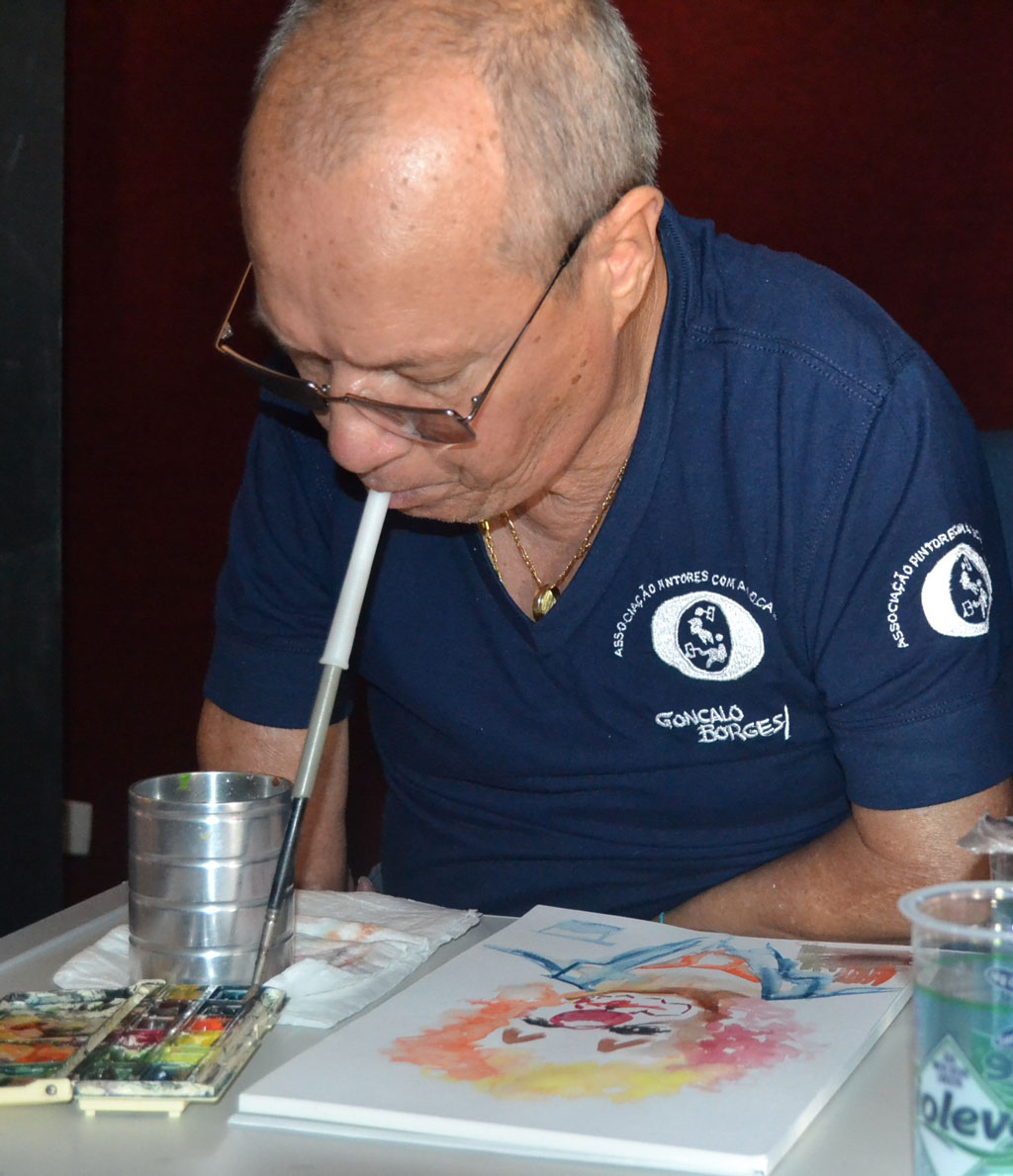 Vários grupos apoiados pelos núcleos de Arte e Cultura, Formação Cidadã e Assessoria de Inclusão se revezaram no palco e mostraram o que o artista plástico Gonçalo Borges sintetizou com propriedade: “Ninguém deixa de ser profissional ou gente por ser deficiente”. Gonçalo Borges pinta com a boca e os pés e participa há seis dos sete anos da Mostra de Arte Inclusiva da Metodista. Pós-graduado em artes plásticas e utilizando técnicas de aquarela, guache, acrílica e óleo, ele montou várias telas durante o evento, que também contou com apoio do Diretório Acadêmico de Administração e Economia e da Atlética Garra Metodista.