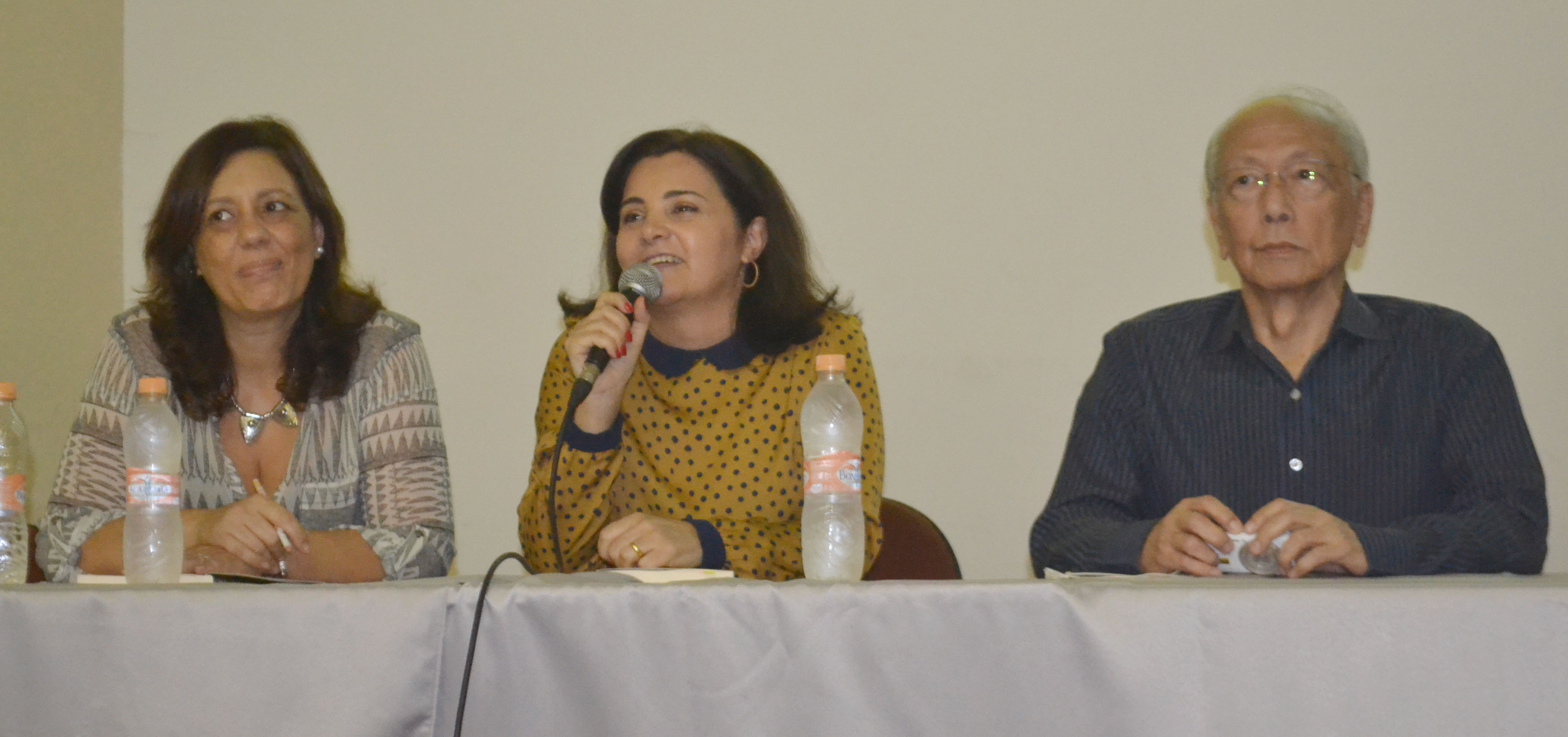 Pedagogos Virgínia Marino e Romeu Sassaki debateram a obra com a autora (ao centro)