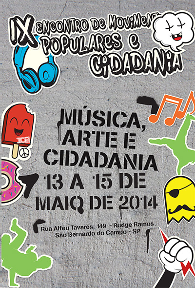O Núcleo de Formação Cidadã da Universidade Metodista de São Paulo promove, de 13 a 15 de maio de 2014, o IX Encontro de Movimentos Populares e Cidadania: Música, Arte e Cidadania.