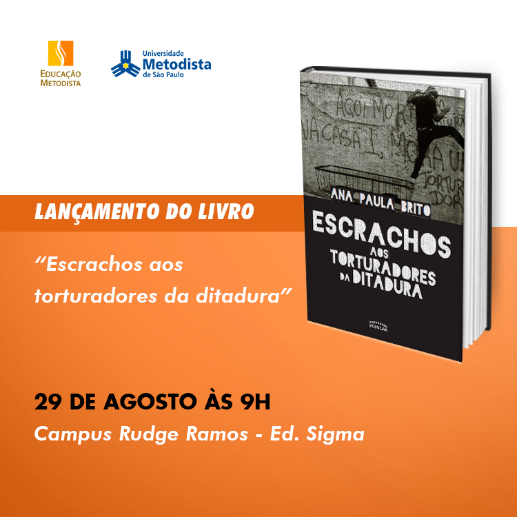 O Núcleo de Formação Cidadã da Universidade Metodista de São Paulo promove o lançamento do livro “Escrachos aos torturadores da ditadura”, da autora Ana Paula Brito. O evento será no dia 29 de agosto de 2017, às 9h, no Auditório Marcio de Moraes, localizado no edifício Sigma do Campus Rudge Ramos.
