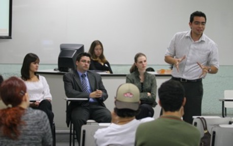 Também estiveram presentes alunos da Metodista que já estão no mercado de trabalho, falando sobre a vida acadêmica e suas conquistas. Beatriz Andrade de Almeida César ( VII Semestre-Magnetti Marelli – Cofap); Bruno Vertoso ( VIII Semestre - VW – Brasil); Marcos Vinicius Machado (VIII Semestre – TNT Logistics) e Sheila Roberta Pessoa (ex-aluna – Burson Marsteller), participaram da recepção compartilhando com os calouros suas experiências.