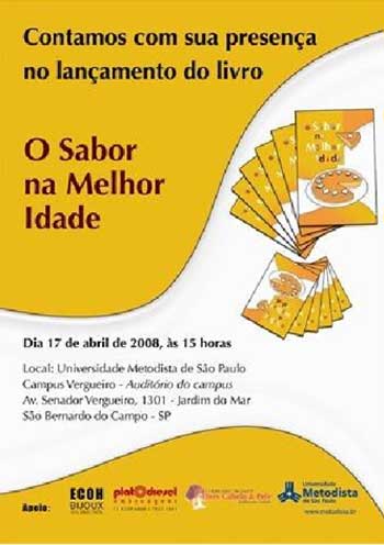 As alunas da turma de Projetos da Universidade Livre da Terceira Idade da Metodista lançam hoje a obra “O sabor na melhor idade”, às 15h, no Anfiteatro do Campus Vergueiro, em São Bernardo. A idéia de escrever um livro com receitas e dicas de culinária surgiu durante as festas e os chás beneficentes promovidos pelo grupo.