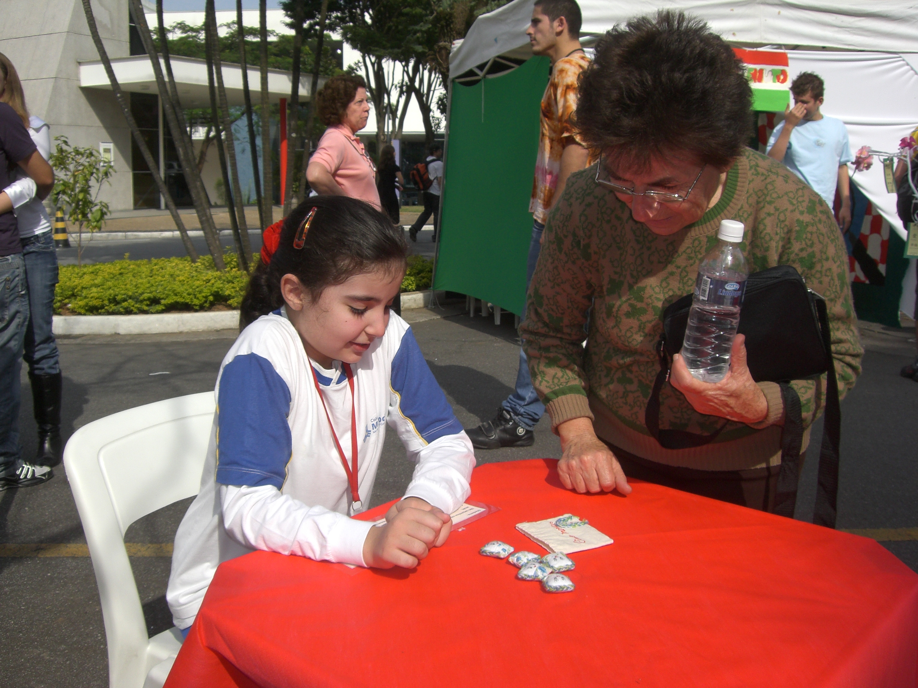 Os estudantes do 9ºA organizaram barracas sobre as culturas de outros países, que são presentes na vida dos brasileiros. “A atividade é muito boa. É um momento para os pais se integrarem e uma oportunidade para os alunos se desenvolverem. Eles aprendem a fazer brinquedos e a ter responsabilidade”, explica a bancária Januzia Capitelli, mãe do aluno Alfredo Capitelli.