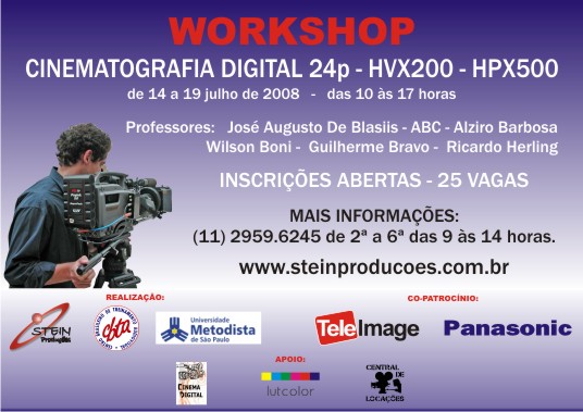 O Curso de Cinema Digital da Metodista promove, de 14 a 19 de julho, das 10h às 17h, o workshop Cinematografia Digital 24p - HVX200 - HPX500.