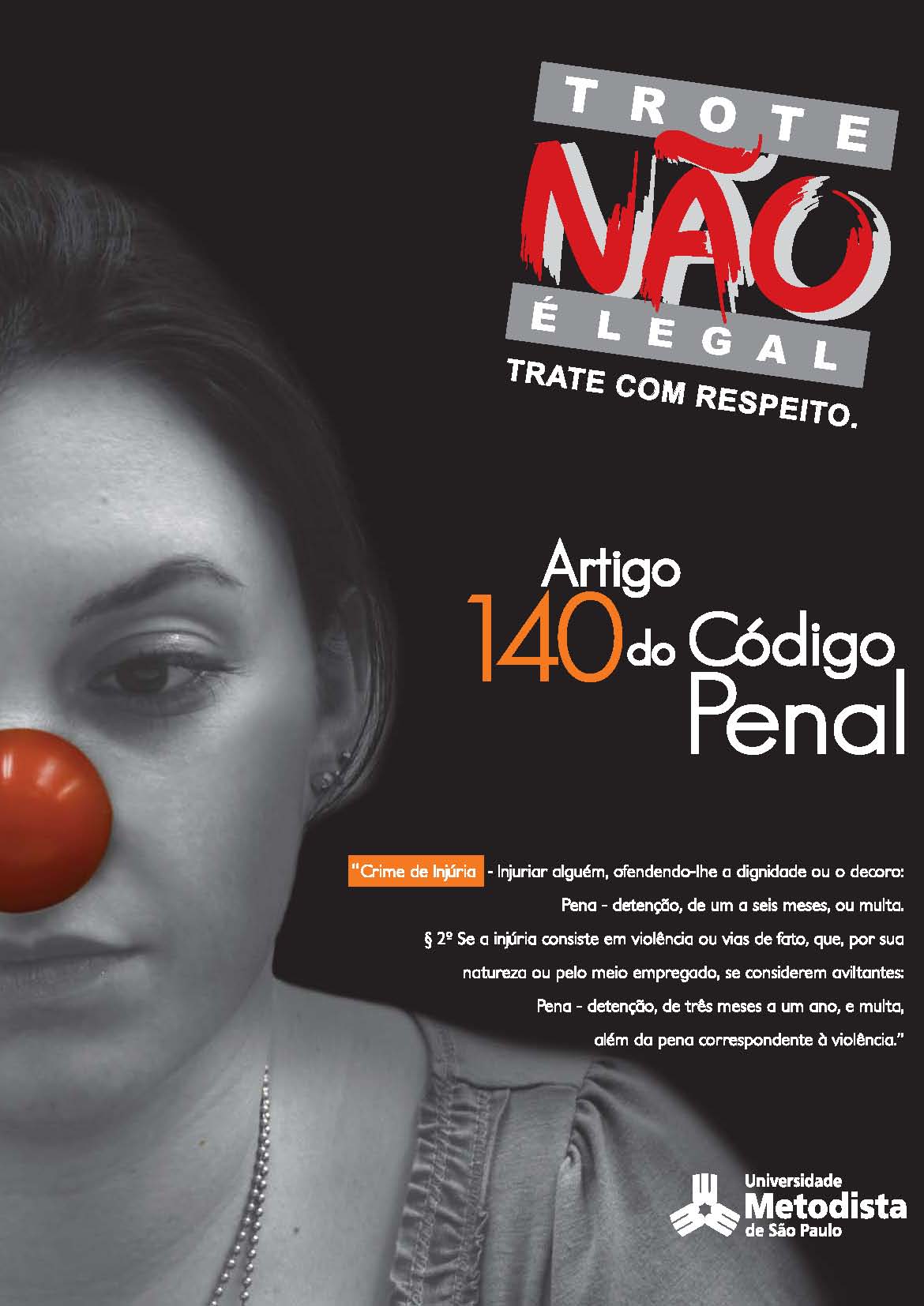 Serão espalhados cartazes informativos e comunicados pelos Campi Rudge Ramos, Planalto e Vergueiro, divulgando o objetivo da Campanha, que é conscientizar veteranos e também calouros sobre a prática de trotes abusivos, que ultrapassam o limite da brincadeira, podendo até serem considerados crimes, previstos no Código Penal Brasileiro. Quando um estudante ofende a integridade corporal ou a saúde de outro, por exemplo, pode ser enquadrado no Artigo 129 do Código, responder por Crime de Lesão Corporal e ser condenado de três meses a um ano de detenção.