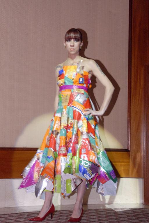 • Desfile de roupas feitas de plásticos reutilizados da estilista Consuello Matroni