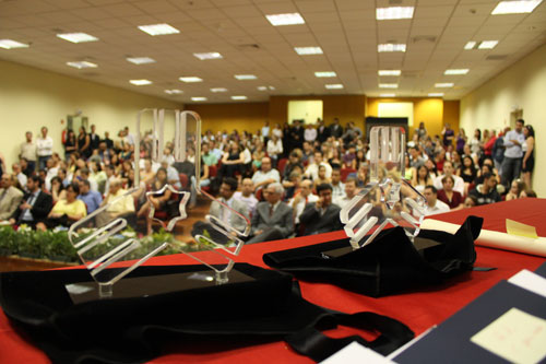 O momento devocional foi conduzido pela agente pastoral Rosane Silva de Oliveira. O diretor da FAGES, prof. Fúlvio Cristófoli abriu a cerimônia. “Todos, que estão concorrendo apresentaram excelentes trabalhos”, elogiou. Ele também agradeceu ao empenho de toda a equipe da Faculdade. “Foi com muito carinho que criamos este Prêmio”. Logo em seguida, o professor Marco Aurélio Bernardes, um dos membros da Comissão de Avaliação do Prêmio, subiu ao palco e falou sobre o projeto como um todo. “Ele é um sonho construindo por muitas mãos e significa o querer bem, o se importar”.