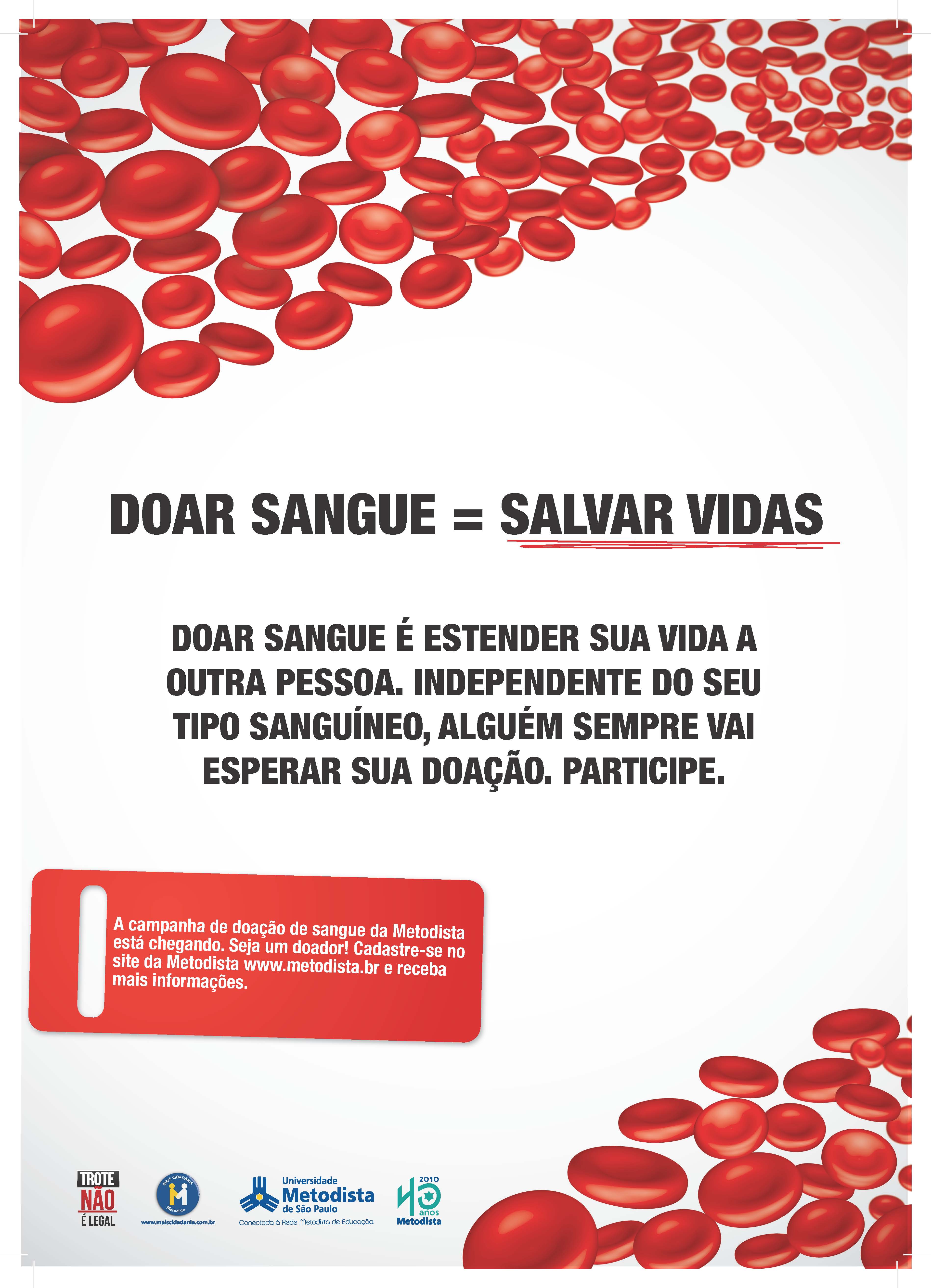 A Universidade Metodista de São Paulo realiza Campanha de Doação de Sangue como forma de estimular a recepção aos novos alunos da Instituição, onde mobilizará também estudantes veteranos, docentes, funcionários e comunidade externa para realizar esta ação voluntária, visando o bem-comum e a integração. O evento ocorre em duas datas, dia 17, quinta-feira, e 19 de fevereiro, sábado, a partir das 8h, no Campus Rudge Ramos.