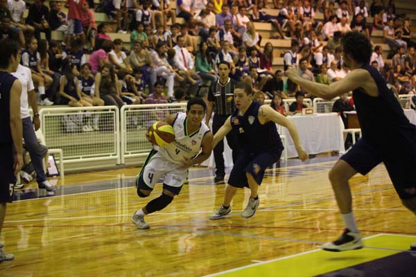 Joel Muñoz (à esq.), o panamenho que, apesar da baixa estatura para um jogador de basquete, vem se destacando no time da Metodista. Foto: Mônica Rodrigues