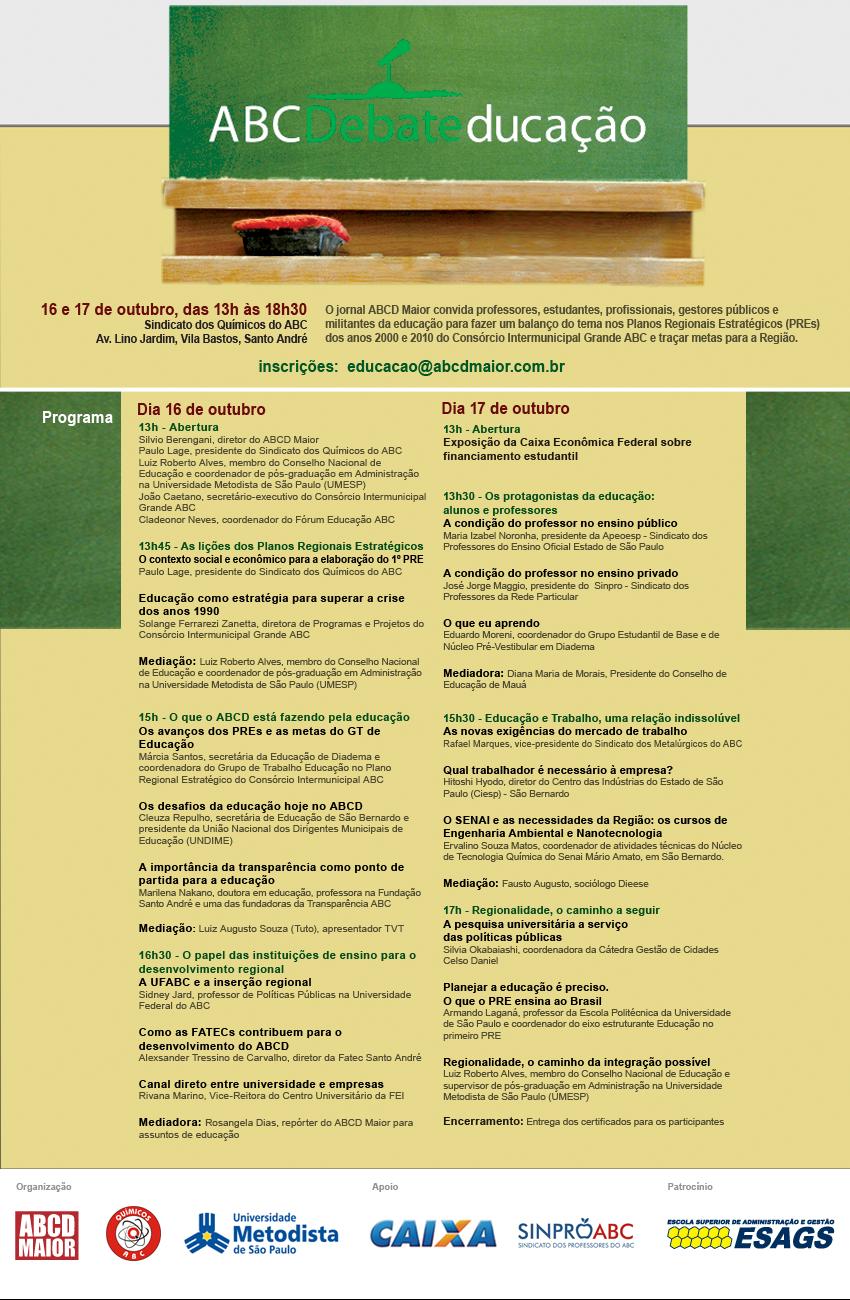 A Universidade Metodista de São Paulo, em parceria com o jornal ABCD Maior, convida professores, estudantes, profissionais, gestores públicos e militantes da educação para o ABC Debate Educação.