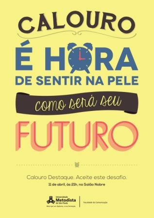 A Faculdade de Comunicação da Metodista realiza, no dia 11 de abril, a primeira etapa do concurso Calouro Destaque, destinado aos alunos do primeiro semestre dos cursos de comunicação. É uma oportunidade para os alunos vivenciarem atividades de suas futuras profissões e serem reconhecidos já no início do curso.