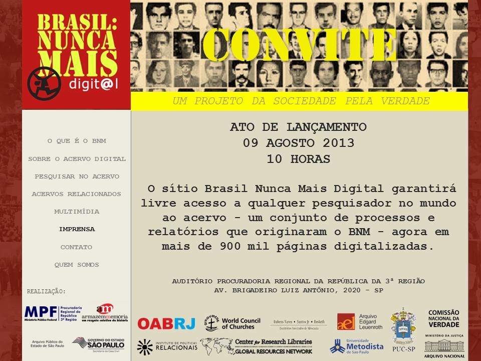 O site garante acesso a todo o material colhido no início dos anos 80 pela Arquidiocese de São Paulo e pelo Conselho Mundial de Igrejas, o qual revelou torturas praticadas por agentes públicos durante a ditadura.