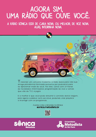 A FAC (Faculdade de Comunicação) da Universidade Metodista de São Paulo inaugura no dia 11 de novembro a nova versão da Rádio Sônica, que vem com a proposta de ser uma rádio feita por jovens e para jovens. A Sônica surgiu em 2009, substituindo a antiga Rádio Metodista. A diferença hoje é que está sendo operada nos formatos streaming (ao vivo) e on demand (para realizar os downloads a qualquer hora).