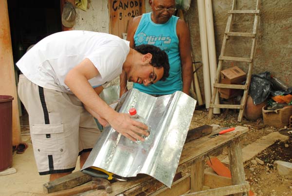 O protótipo foi instalado no telhado de uma casa, como uma luminária. Com o forte sol do meio-dia, que irradia na chapa presa a garrafa coberta na tampa com fita isolante, é possível iluminar o cômodo da casa entre 40 a 60 watts.