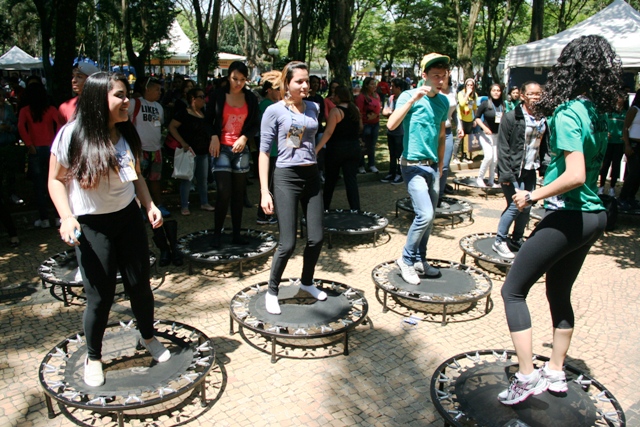 Entre as muitas atrações que o Dia da Universidade Aberta (DUA) oferece, estão as aulas de Jump promovidas por alunos e professores do curso de Educação Física da Universidade.