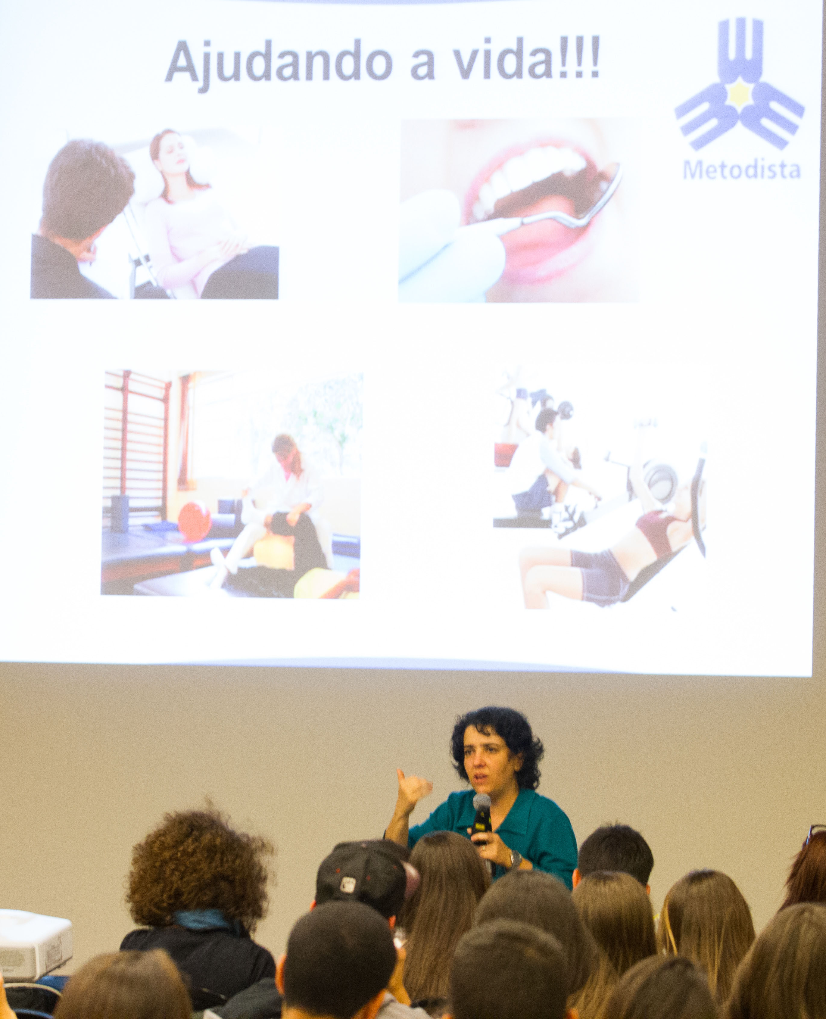 Cristiane Lopes durante a palestra "Profissionais da Saúde: vocação ou profissão?". Foto: Anderson Rodrigues