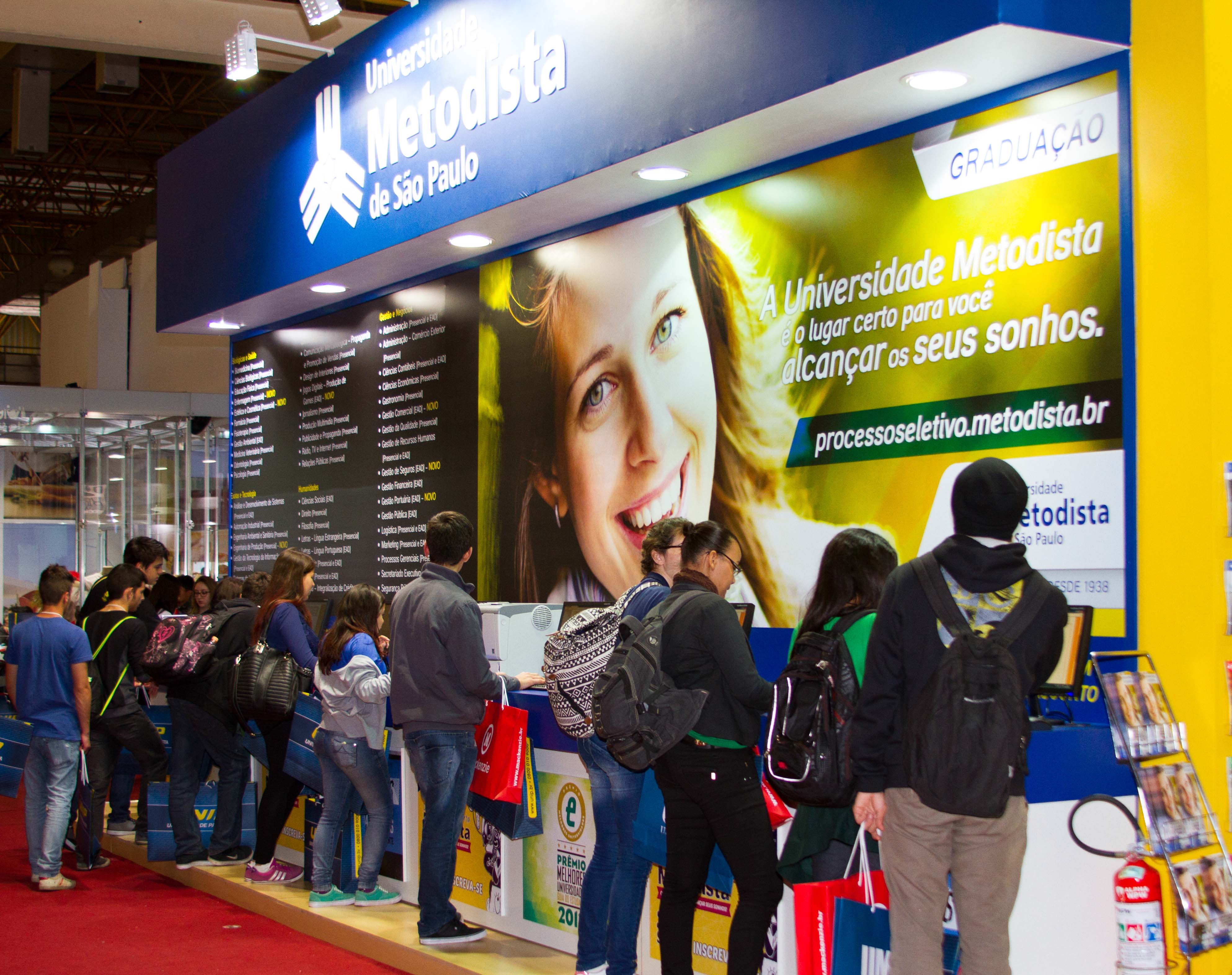 Vestibulandos conhecem sobre cursos no estande da Metodista Feira Guia do Estudante. Foto: Anderson Rodrigues.