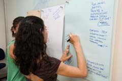 Alunos deixam recados de agradecimento ao receberem certificação pelo trabalho na Agência. Foto: Eduardo Damini
