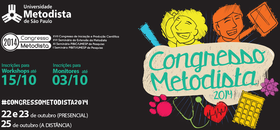 Neste ano o Congresso Metodista compõe-se de quatro eventos: XVII Congresso de Iniciação e Produção Científica, XVI Seminário de Extensão da Metodista, XI Seminário PIBIC/UMESP de Pesquisa e I Seminário PIBITI/UMESP de Pesquisa, este último como experiência inicial dedicada exclusivamente à apreciação de trabalhos de alunos bolsistas de iniciação científica da área tecnológica, com apoio do CNPq.