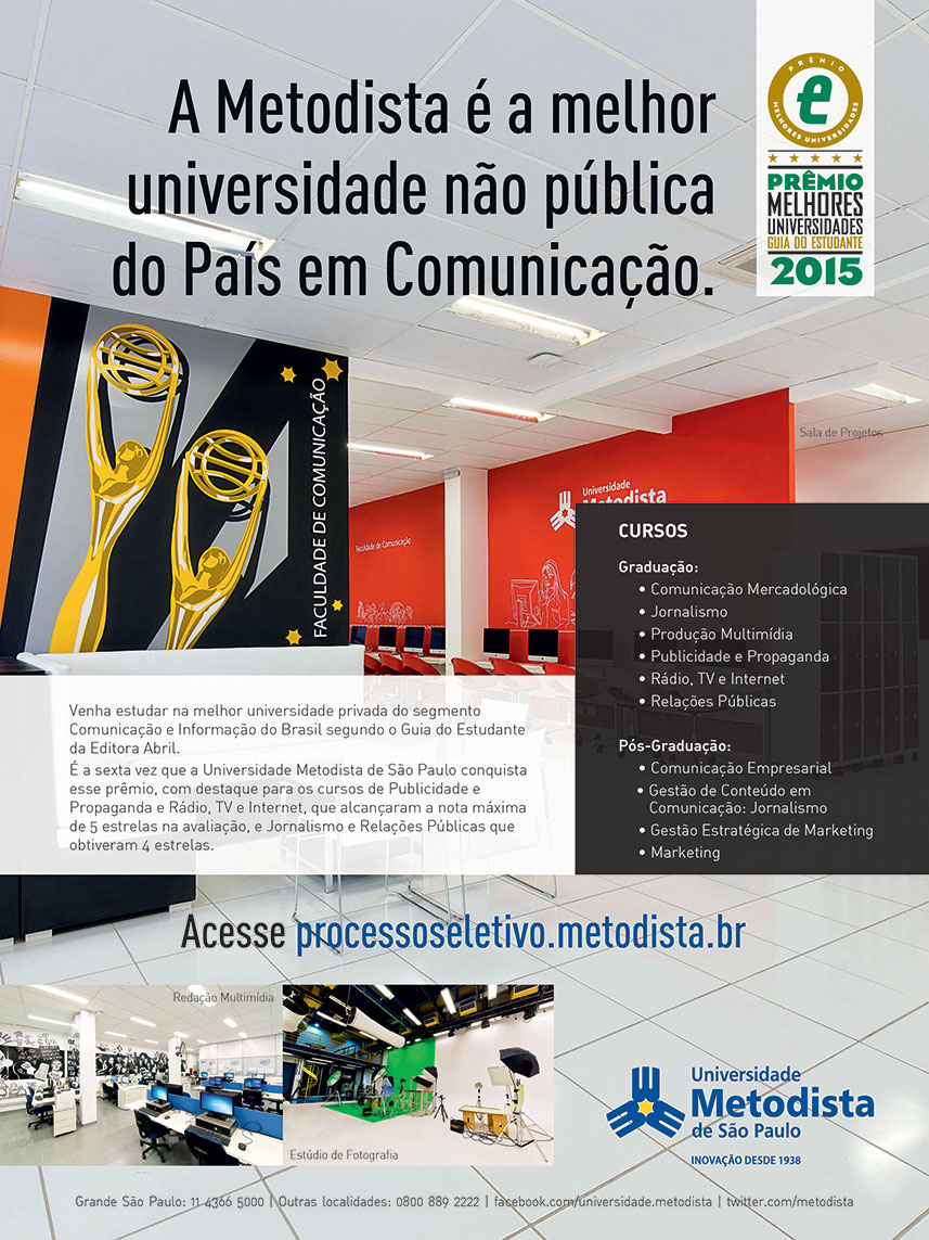 O segundo semestre de 2015 foi de conquistas e reconhecimentos para a Universidade Metodista de São Paulo, especialmente na área de Comunicação.